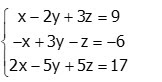 himpunan penyelesaiannya adalah {(1, -1, 2)}.